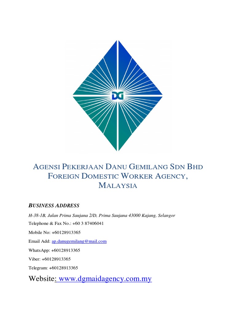 Agensi Pekerjaan Danu Gemilang Sdn Bhd Malaysia Domestic Worker