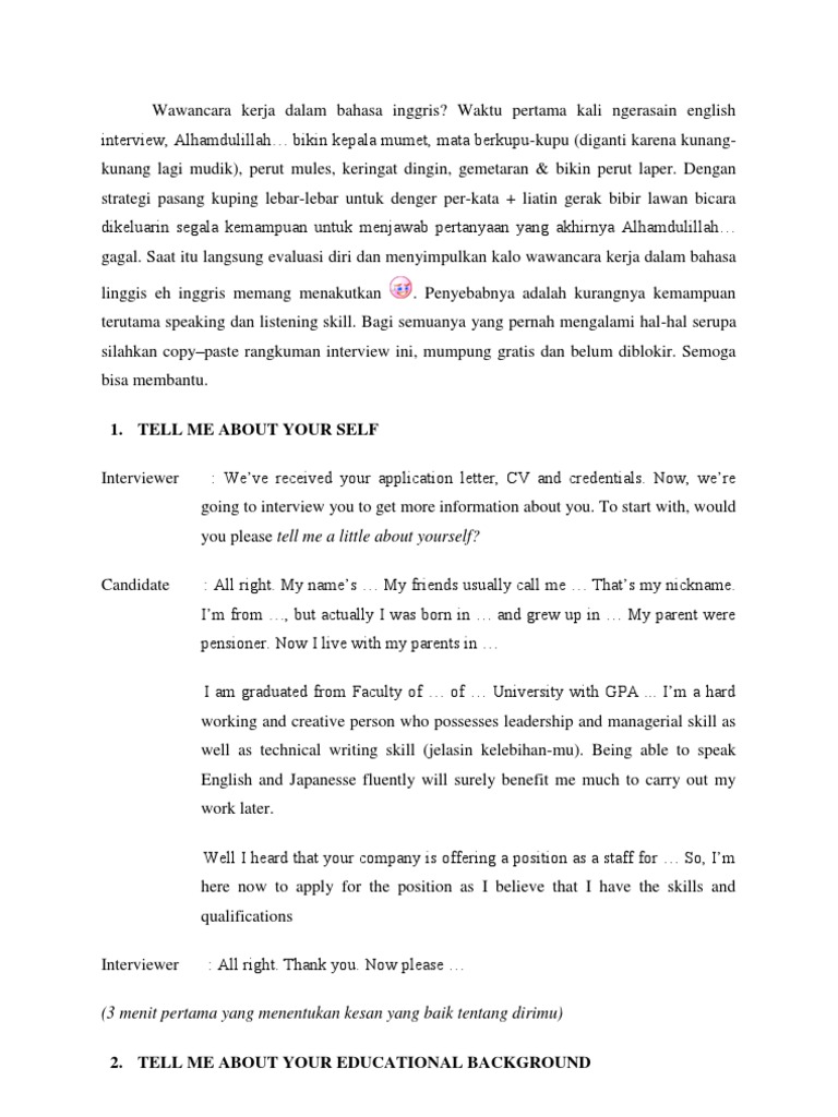 Wawancara Kerja Dalam Bahasa Inggris Job Interview Labour
