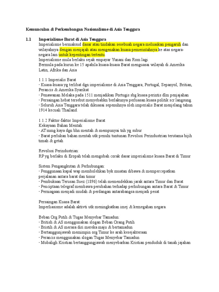 Doc Bab 1 Kemunculan Dan Perkembangan Nasionalisme Di Asia Tenggara Vincent Xiang Academia Edu