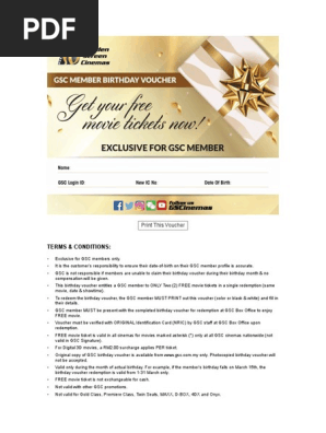 Gsc Member Redeem 2 Free Movie Tickets Voucher During Your Birthday Month 20 Discount The Burger Outpost