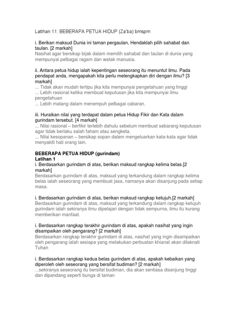 Gurindam Beberapa Petua Hidup Gurindam Beberapa Petua Hidup Nilai Nilai Murni Yang Dapat Dijadikan