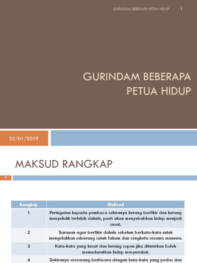 Gurindam Beberapa Petua Hidup Pptx Gurindam Beberapa Petua Hidup Rangkap 1 Fikir Dan Kata Kurang Fikir Kurang Siasat Tentu Dirimu Kelak Tersesat Course Hero