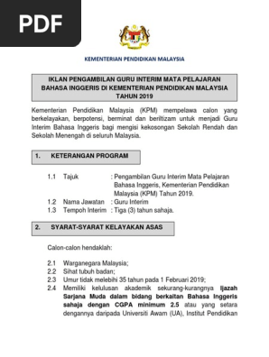 Jawatan Kosong Guru Interim Di Kementerian Pendidikan Malaysia Kpm Seluruh Malaysia Jobcari Com Jawatan Kosong Terkini