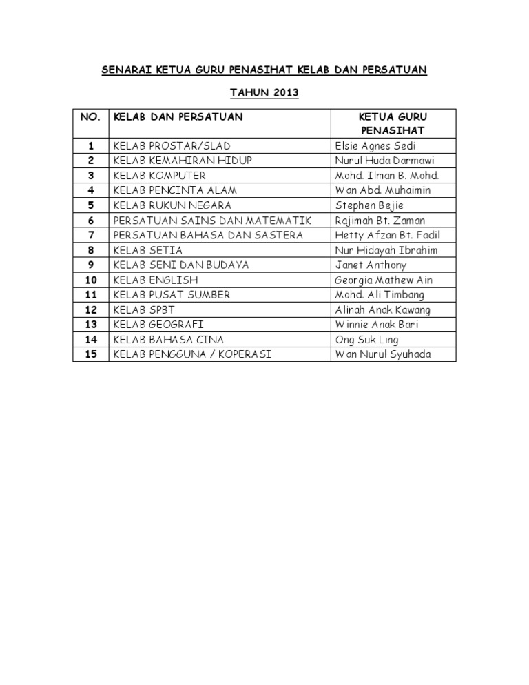 Senarai Guru Penasihat Kelab Dan Persatuan
