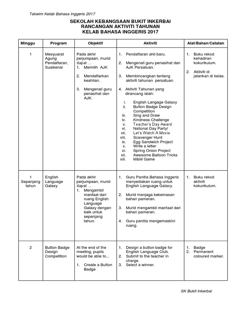 Muat Turun English Language Club Activity Booklet Cikgu Share