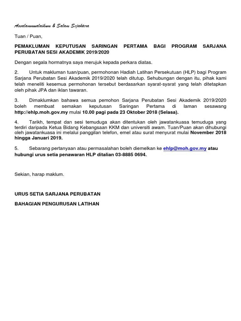 Mmi Doctors Pengumuman Tawaran Kemudahan Cuti Belajar Program Latihan Dengan Tanpa Hadiah Latihan Persekutuan Bagi Mengikuti Kursus Dalam Perkhidmatan Secara Sepenuh Masa Sesi Akademik 2020 2021 Kepada Pegawai