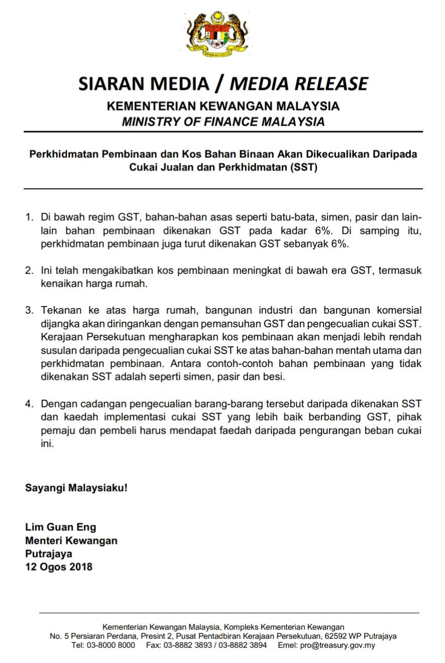 Bfm News Auf Twitter Building Materials Like Cement Sand And Iron Will Not Be Subjected To Sst The Finance Ministry Hopes Developers Will Pass This On To Potential Homebuyers Https T Co K90svll19p