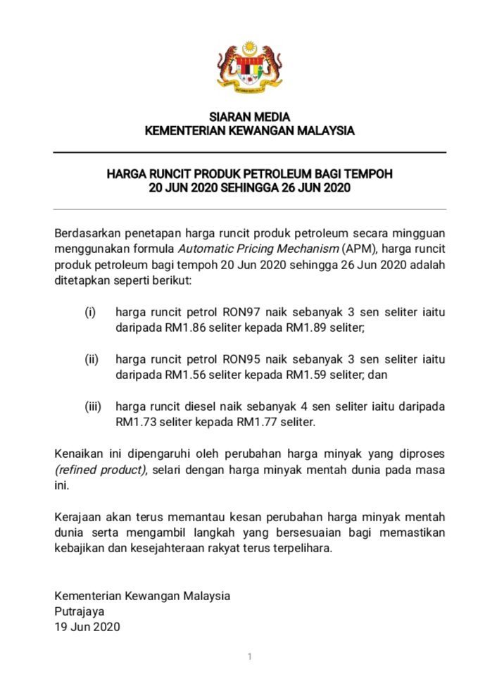 Harga Minyak September 2020 Petrol Diesel Terkini Harga Minyak