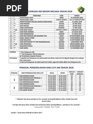 Kalendar Cuti Umum Dan Cuti Sekolah 2018