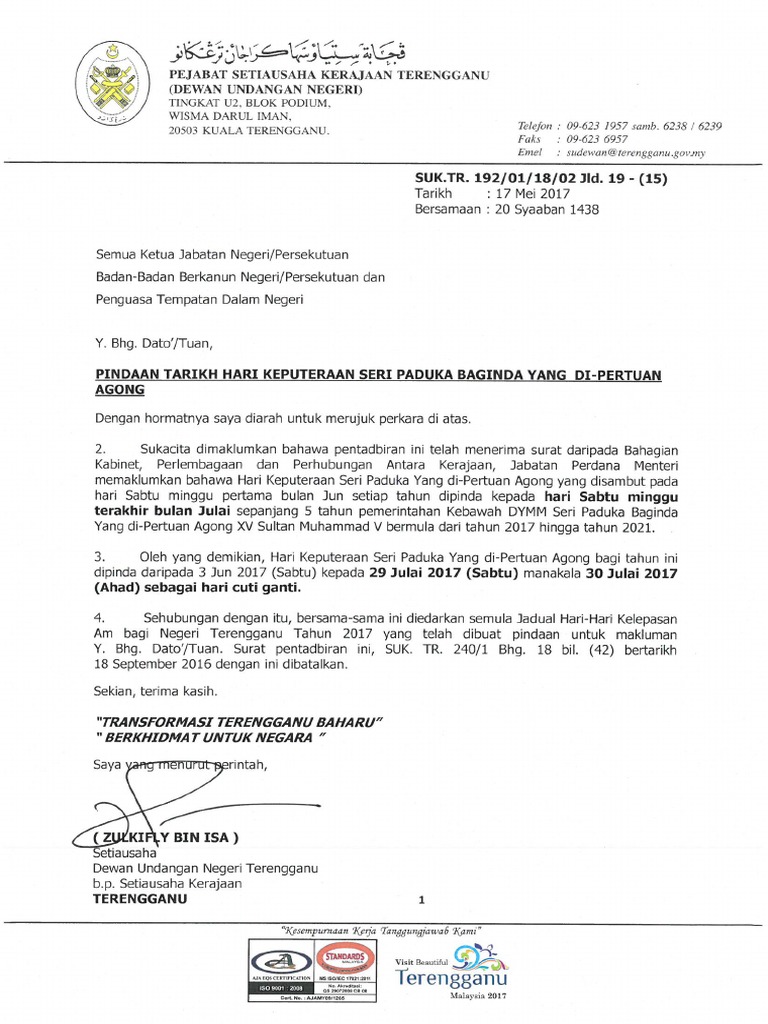 Ppd Hulu Terengganu Unit Pengurusan Pembangunan Kemanusiaan Hari Kelepasan Am Negeri Terengganu Tahun 2017