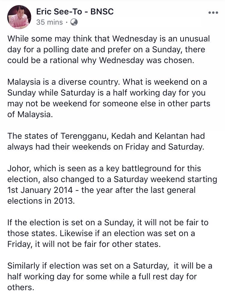 Astro Radio News On Twitter Barisanasional Strategist Eric See To Explains The Possible Rationale For Ge14 To Be Held On A Wednesday This Year The First Time An Election Is Held On A