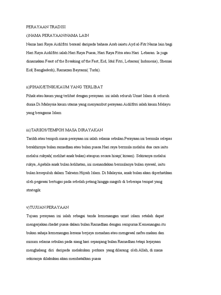 Kerja Kursus Sejarah Perayaan Hari Raya Aidilfitri