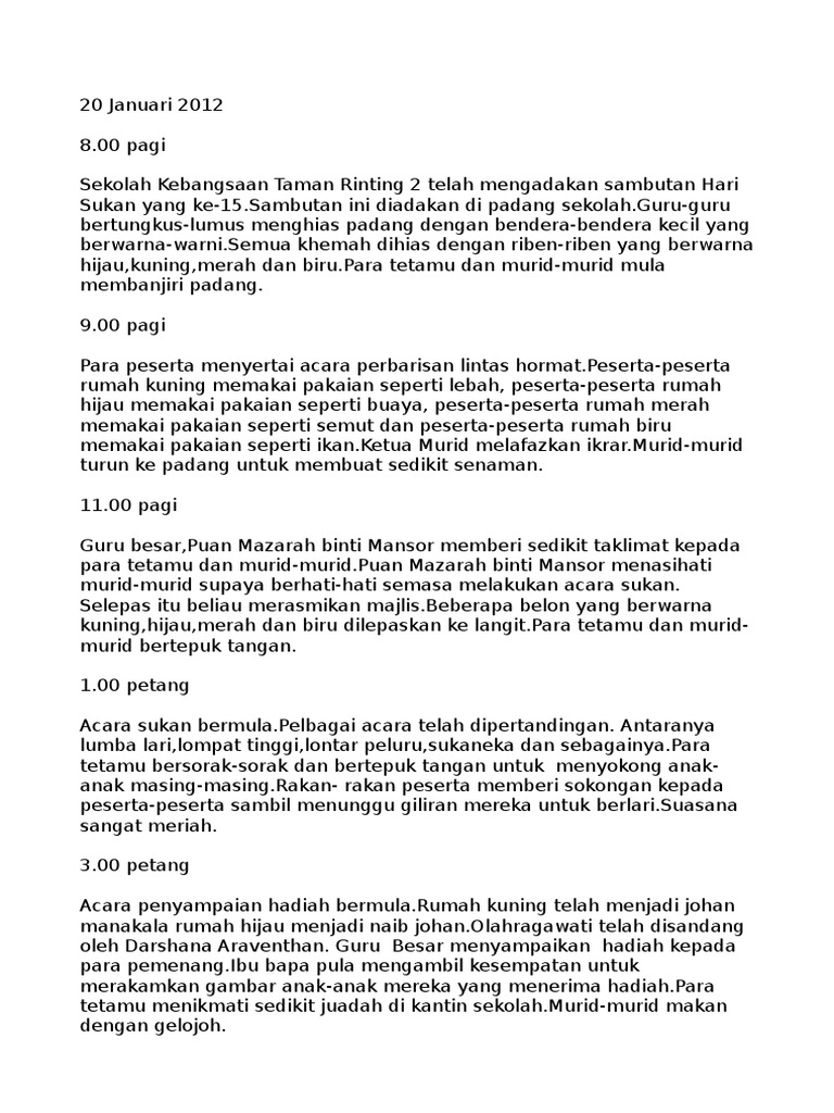 Hari Sukan Sekolah Contoh Karangan Kronis P