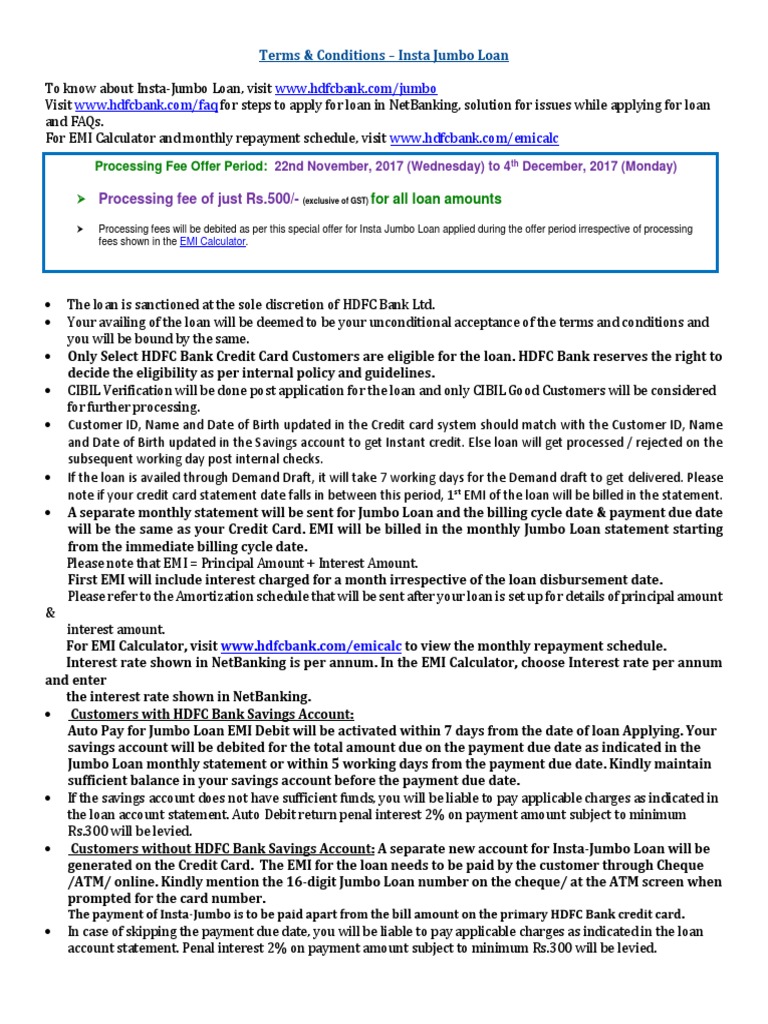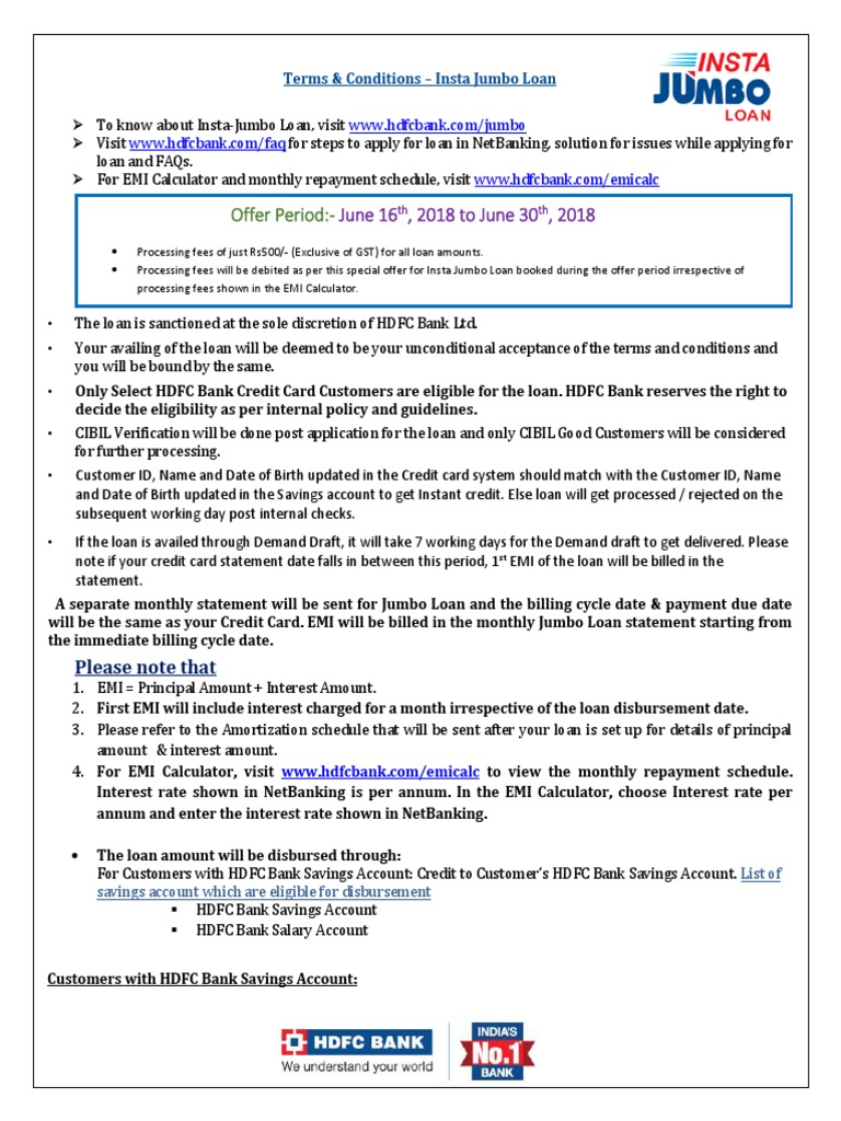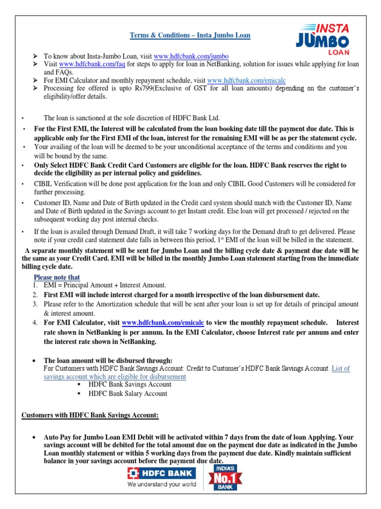 Hdfc Jumbo Loan Terms And Conditions Credit Card Banks