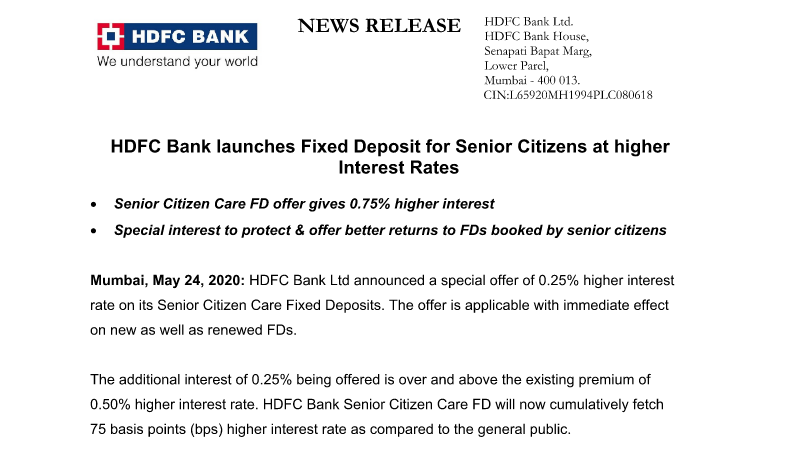 Hdfc Bank News On Twitter Hdfc Bank Launches Fixed Deposit For Senior Citizens At An High Rate Of Interest 0 75 To Be Exact Fixeddeposit