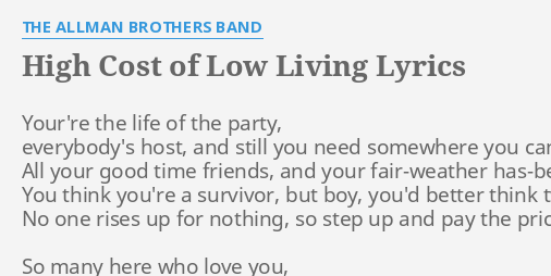 High Cost Of Low Living Lyrics By The Allman Brothers Band Your Re The Life Of