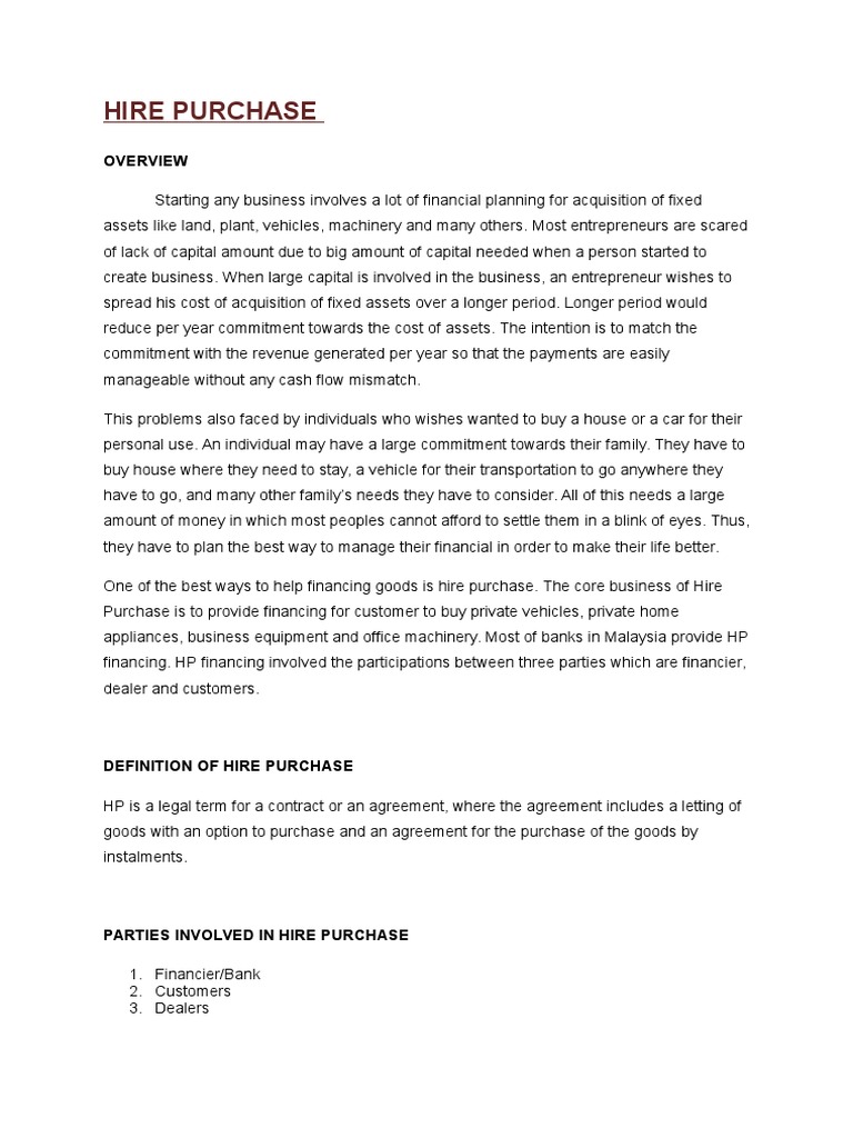 Hire Purchase Topic11 Hirepurchase Hp Learningoutcomes 1 2 3 Purchaseagreement 4 Course Hero