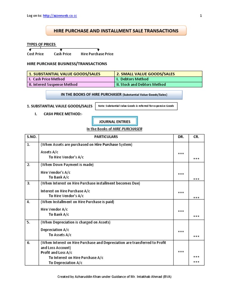 Hire Purchase And Instalment Sale Transactions Financial Transaction Interest