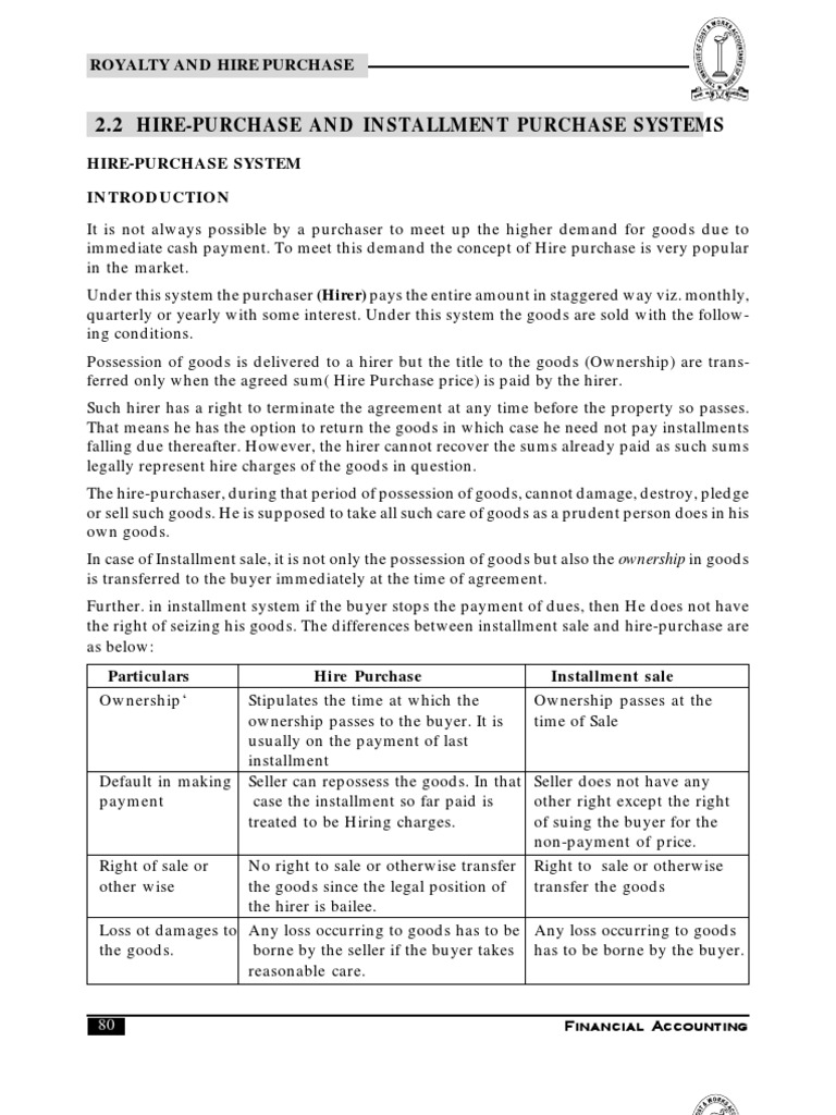 Hire Purchase And Installment Payment System