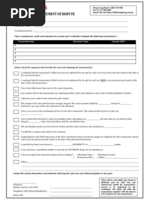 Hl Dispute Form Pdf Cheque Money
