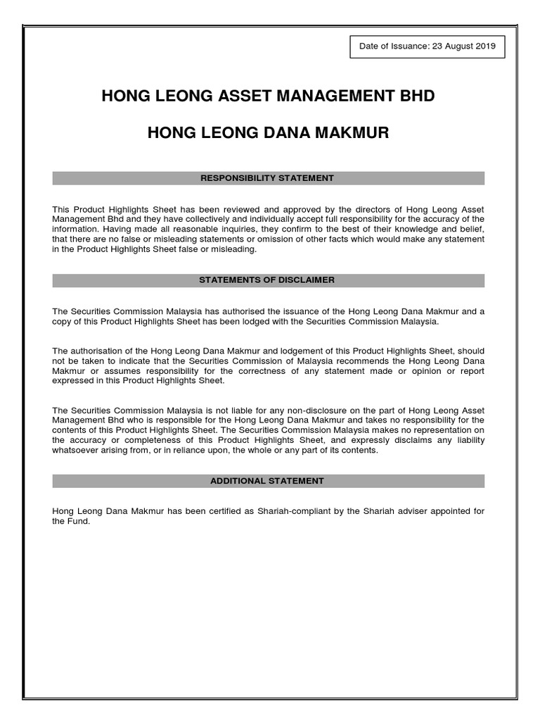 Hong Leong Asset Fund Shariah Compliant Dana Makmur Pdf Investment Fund Warrant Finance