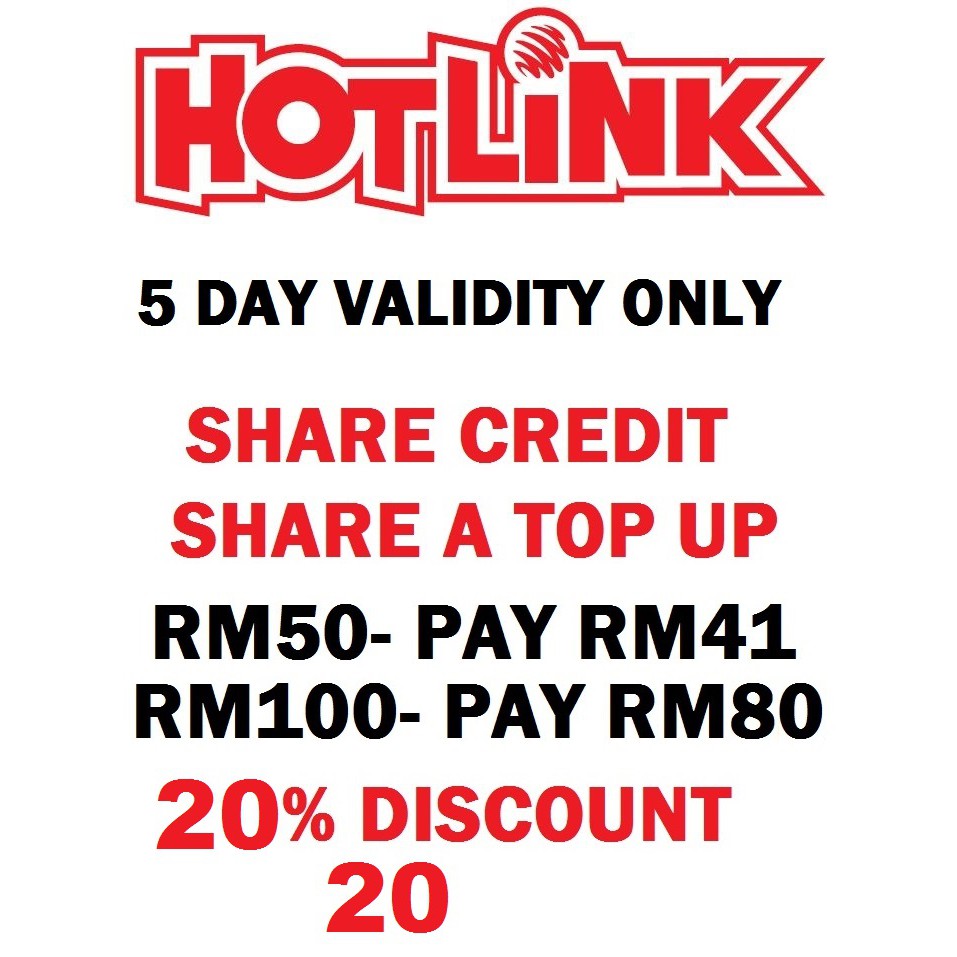 Hotlink Share A Top Up Rm100 Validity Period 5 Days Shopee Malaysia