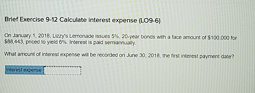 Solved Brief Exercise 9 12 Calculate Interest Expense Lo Chegg Com