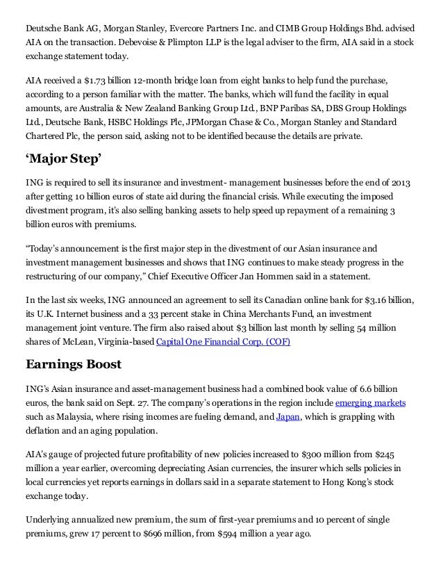 Ing Agrees To Sell Malaysia Unit To Aia Group Bloomberg