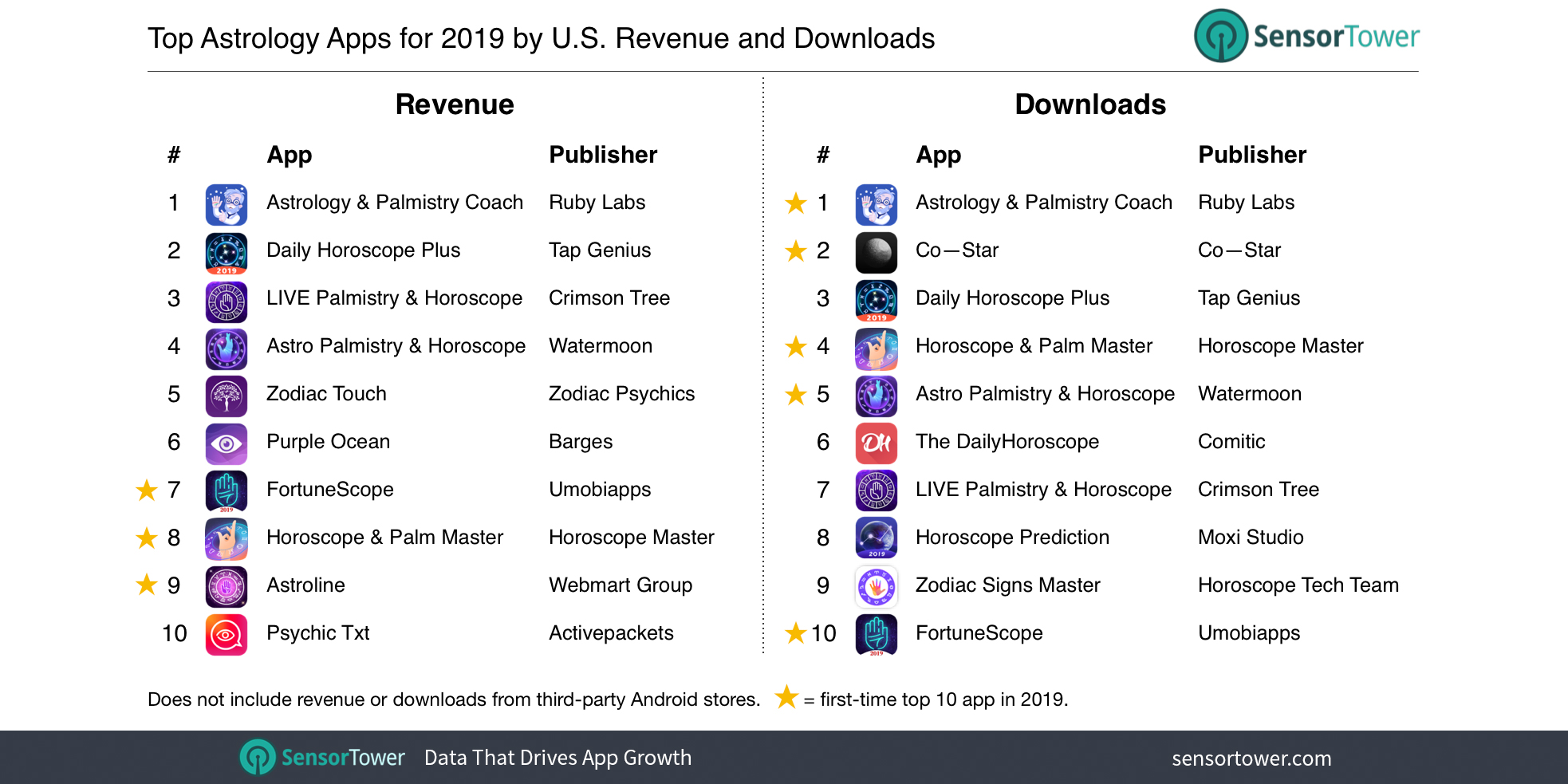 Sensor Tower On Twitter User Spending In The Top 10 Astrology Apps Reached Close To 40m In 2019 A 64 7 Increase From 2018 Astrology Palmistry Coach Was The Highest Earner For