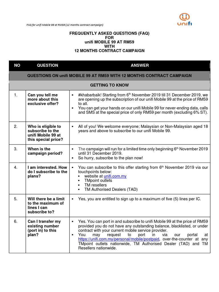 Faq Unifi Mobile 99 At Rm59 With 12 Months Contract Mobile App Telecommunications