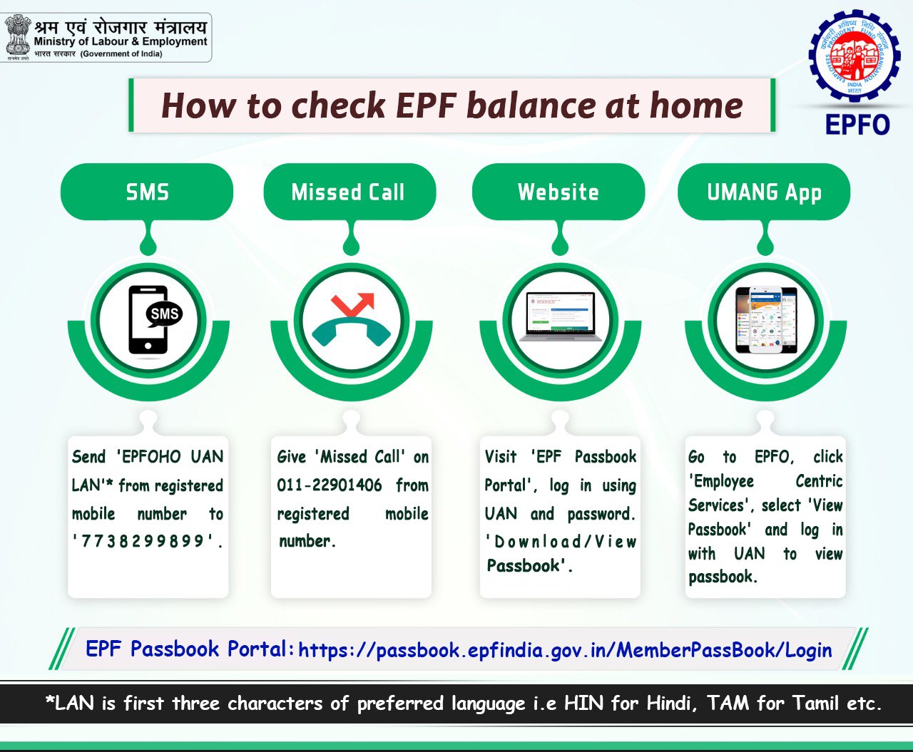 Epf Balance Check Online Sms Mobile App Uan Missed Call Passbook