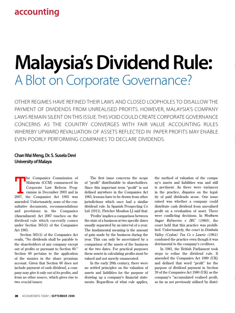 Right to declare a dividend only the shareholders in the annual general meeting can declare the dividend. The dividends in malaysia can be distributed once twice per year or quarterly according to the rules of the company and considering the financial status. This is usually done to compute trailing dividend yield. Key changes to the dividend regime.